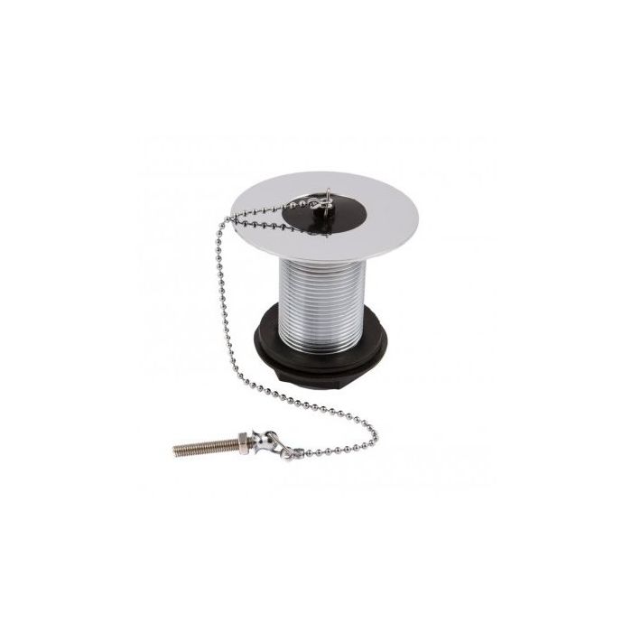 Solid Metal Sink Waste With Black Plastic Plug & Chain 1 1/2" - Chrome