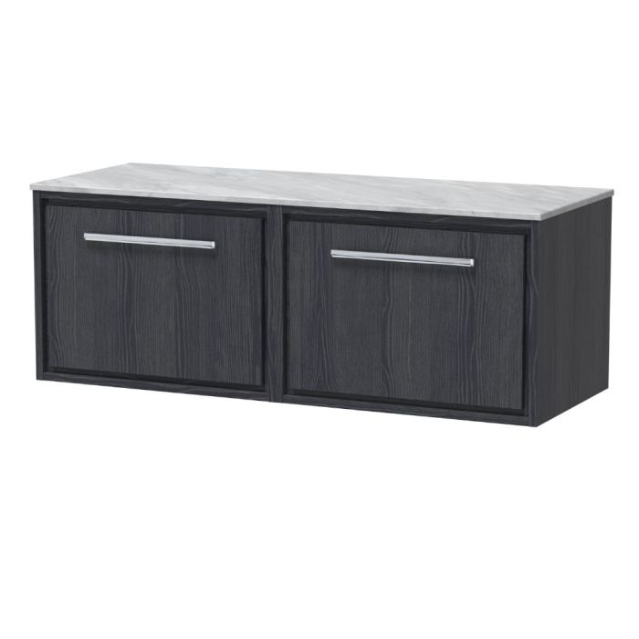 Hudson Reed Lille 1200mm Wall Hung 2 Drawer Vanity Unit & Grey Marble Worktop - Graphite Grey Woodgrain
