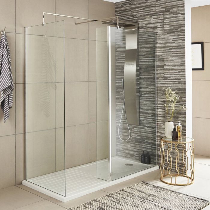 Nuie 8mm Wetroom Return Screen 215mm - Chrome