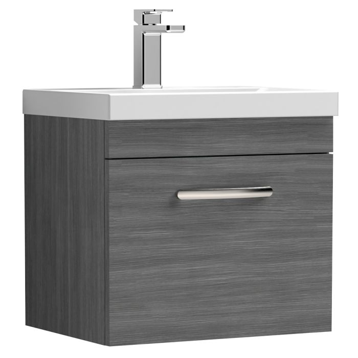 Nuie Athena 500mm Wall Hung Cabinet & Thin-Edge Basin - Anthracite Woodgrain
