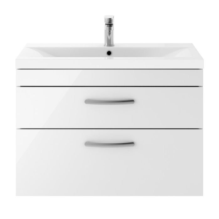 Nuie Athena 800mm 2 Drawer Wall Hung Cabinet & Mid-Edge Basin - Gloss White