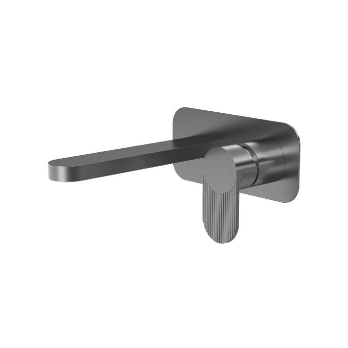 Nuie Cyprus Fluted Wall Mounted 2TH Basin Mixer - Brushed Pewter