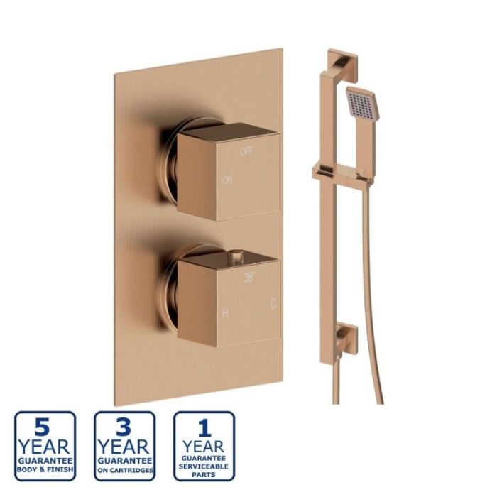 Serene Emmie Square Thermostatic Single Outlet Shower Valve with Sliding Rail Kit - Brushed Bronze