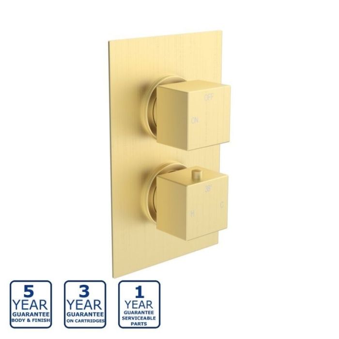 Description / Serene Emmie Square Thermostatic Single Outlet Twin Shower Valve - Brushed Brass