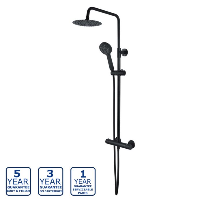 Description / Serene Round Thermostatic Bar Shower Valve with Sliding Rail Kit & Fixed Head - Matt Black