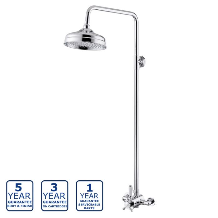 Serene Sancia Traditional Bar Shower Valve with Rigid Riser & Fixed Head - Chrome