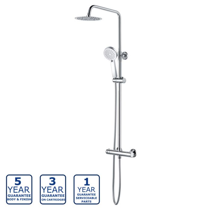 Description / Serene Ximena Thermostatic Bar Shower Valve with Sliding Rail Kit & Fixed Head - Chrome