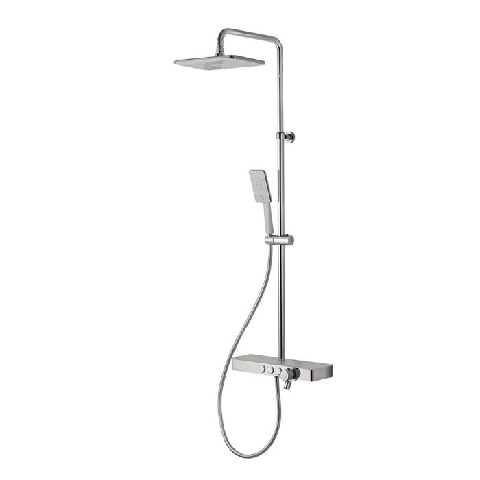 Vema Thermostatic Shower Column with Fixed Head, Riser & Foot Wash - White & Chrome